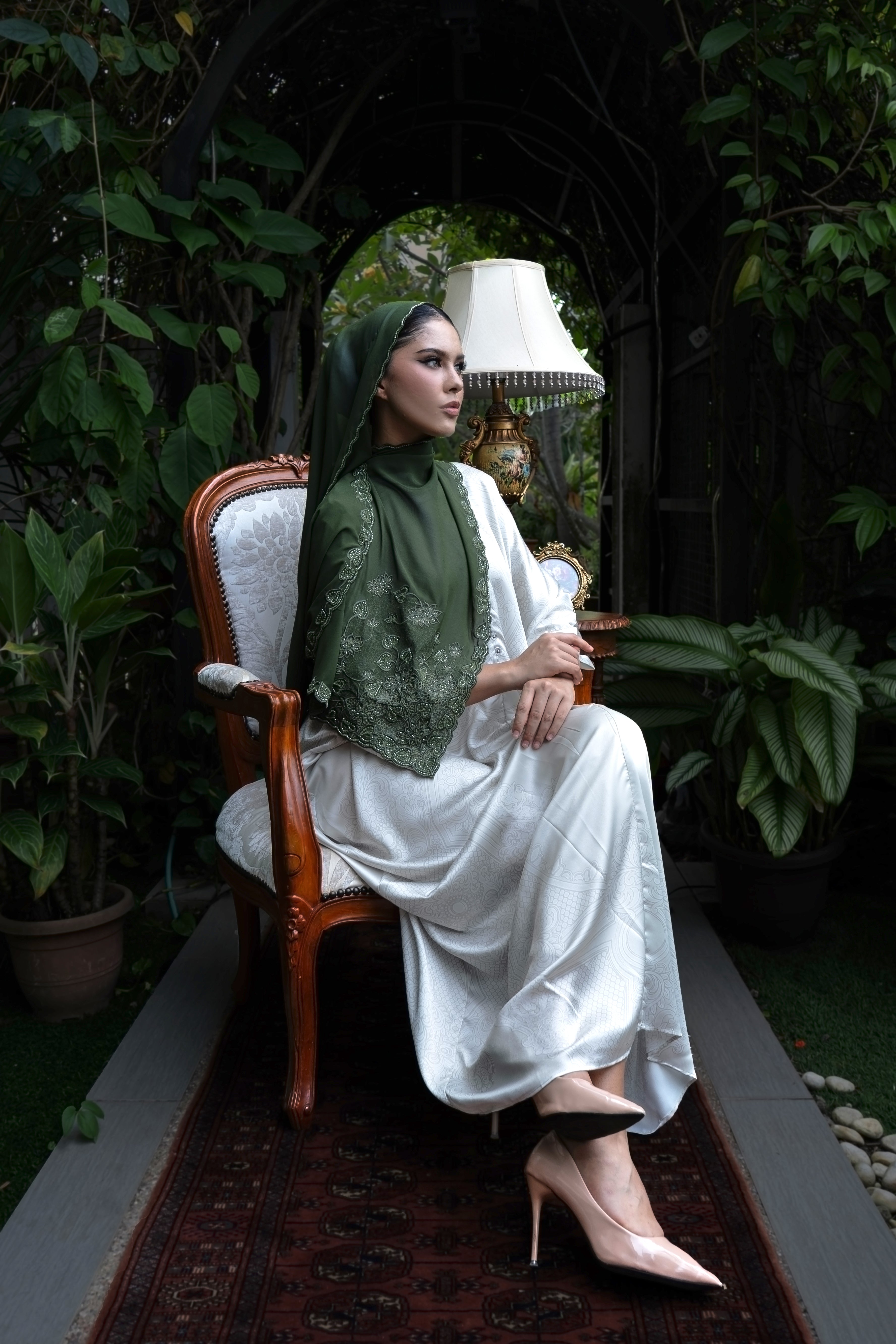 Saḥarā Kerawang Shawl - Deep Olive